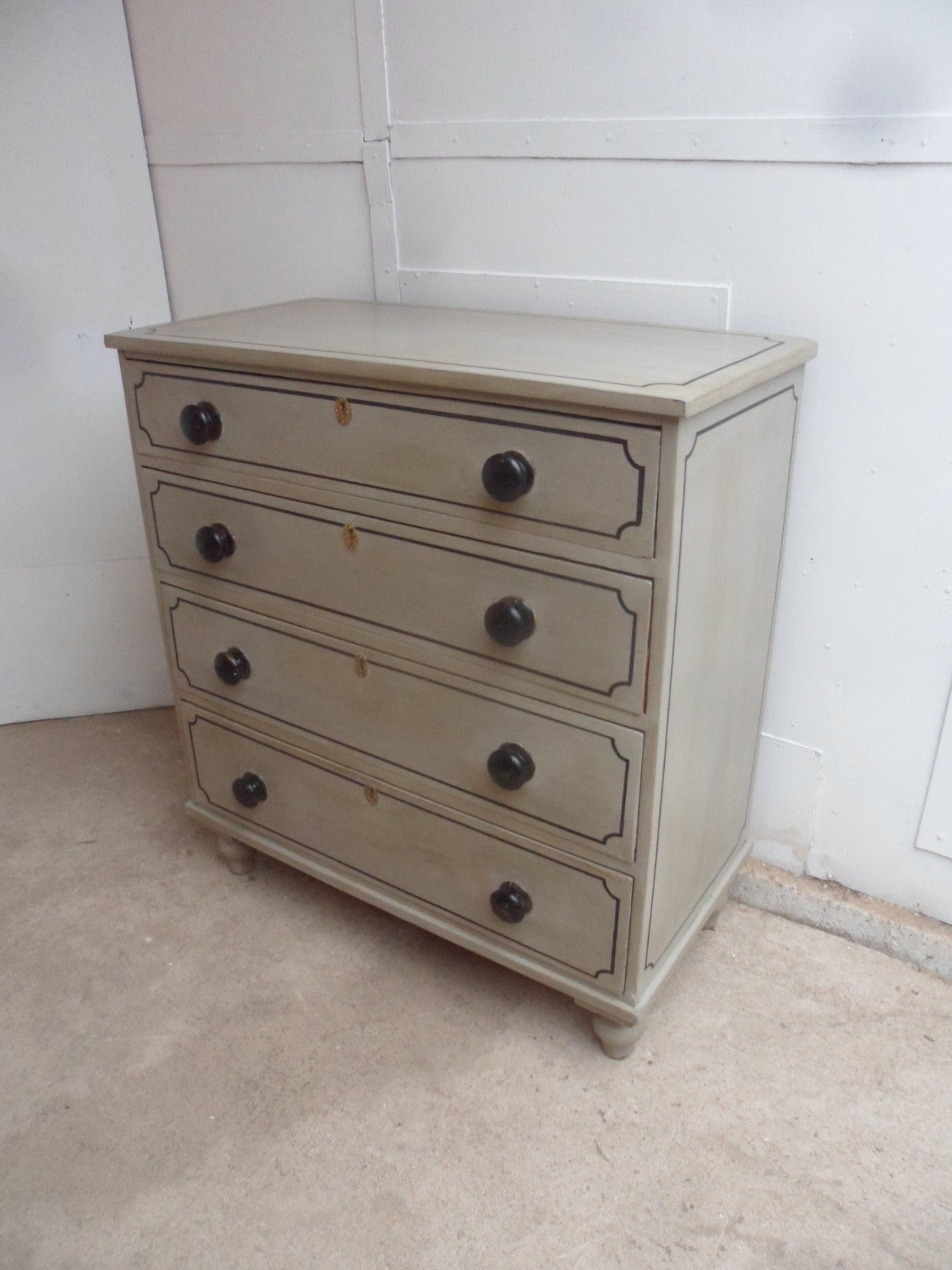 Superb Early Victorian Antique Pine Painted Light Grey 4 Chest of Drawers