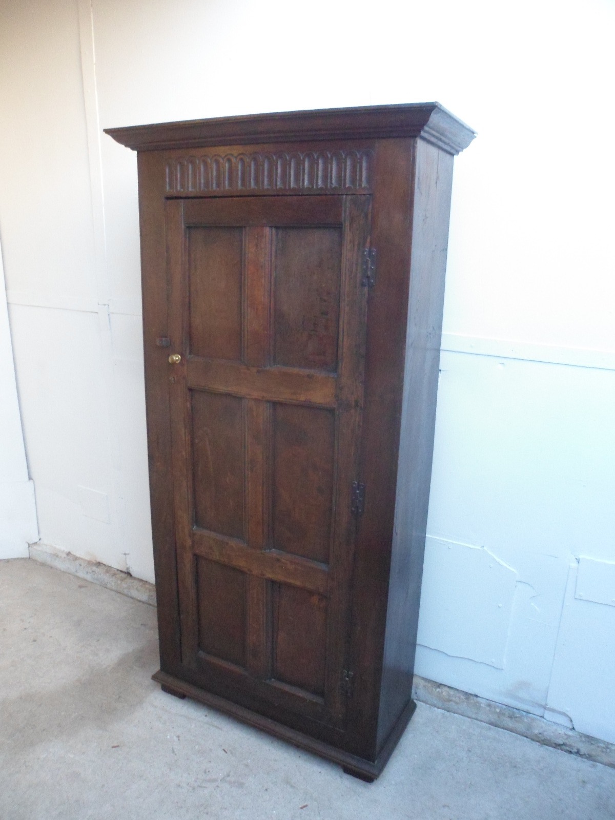 Superb Early Victorian Solid Golden Oak 1 Door Hall Wardrobe / Office Cupboard