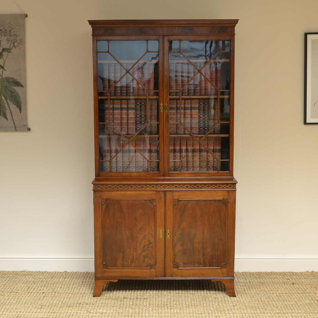 Superb Edwardian Astragal Glazed Mahogany Bookcase on Cupboard