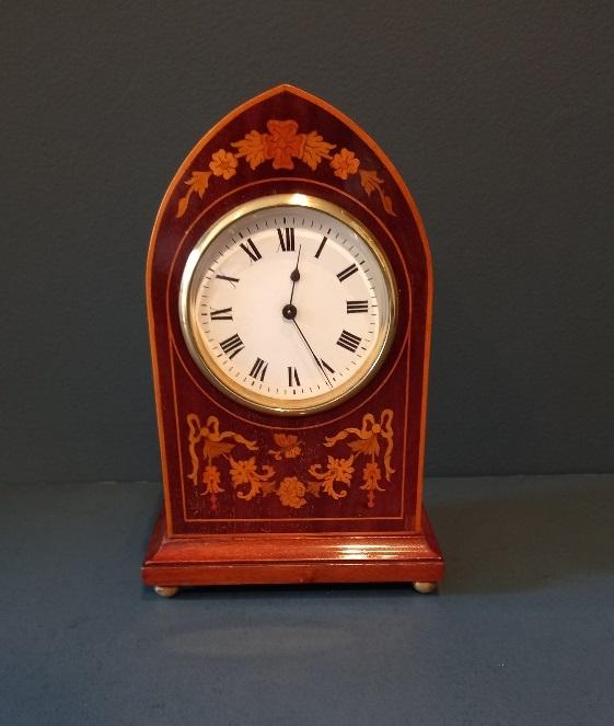 Superb Edwardian Inlaid Lancet Top Mantel Clock