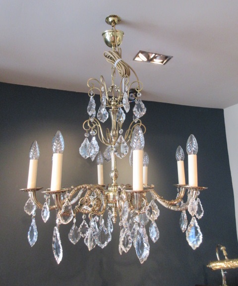 Superb Edwardian Period Brass & Cut Glass Chandelier