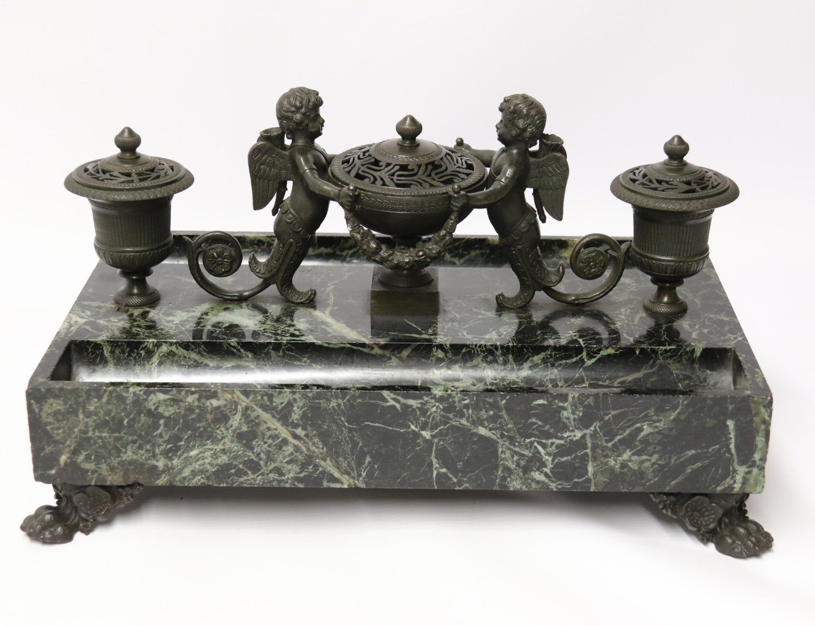 Superb Empire Bronze & Marble Desk Top Inkstand