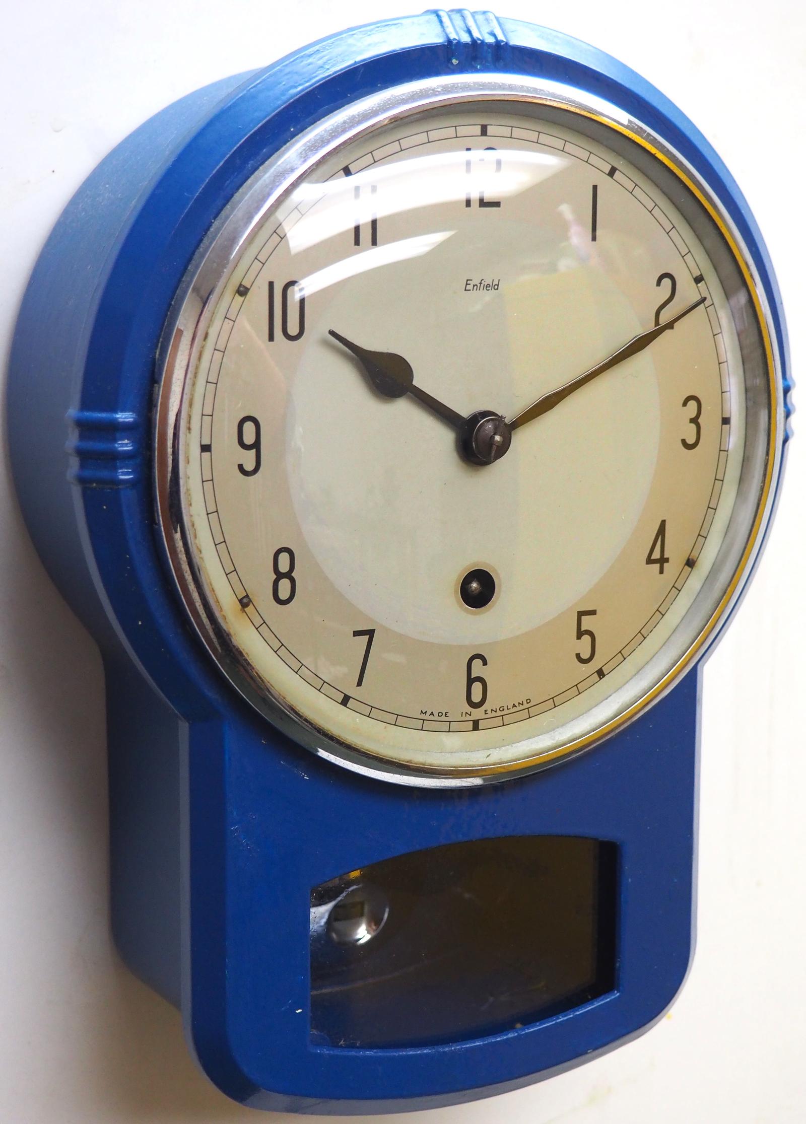 Superb English Smiths Enfield Drop Dial Wall Clock - Blue Smiths Kitchen Clock Original c.1950