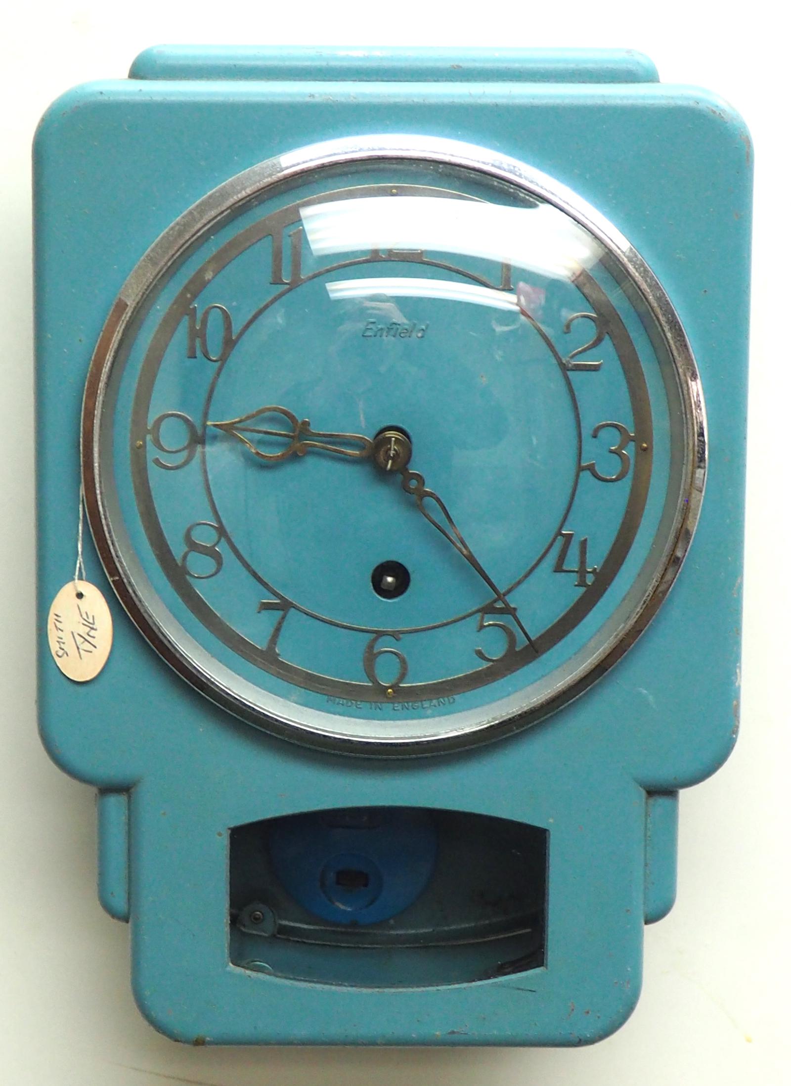 Superb English Smiths Enfield Drop Dial Wall Clock - Smiths Kitchen Clock Original Blue Paint c.1950 (1 of 10)