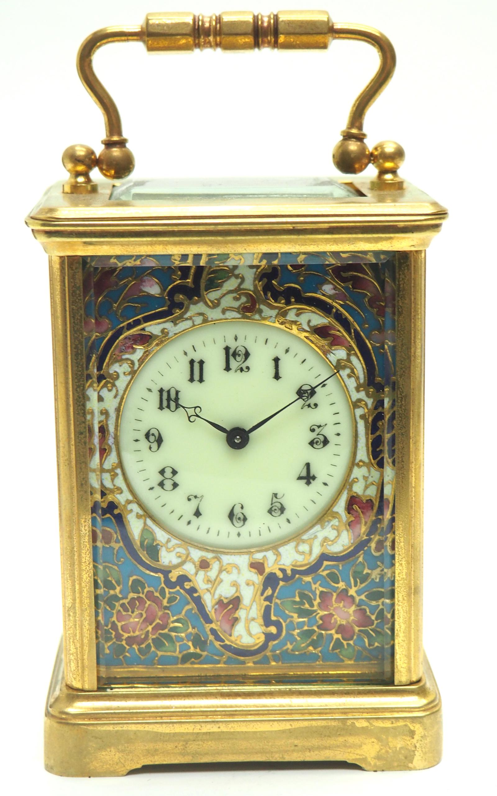 Superb French 8 Day Champleve Carriage Clock Cylinder Platform, Working c.1900