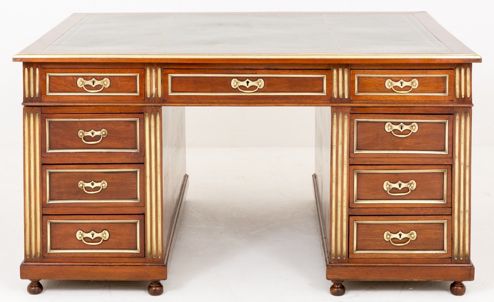 Superb French Mahogany & Gilt 18 Drawer Partners Desk (1 of 1)