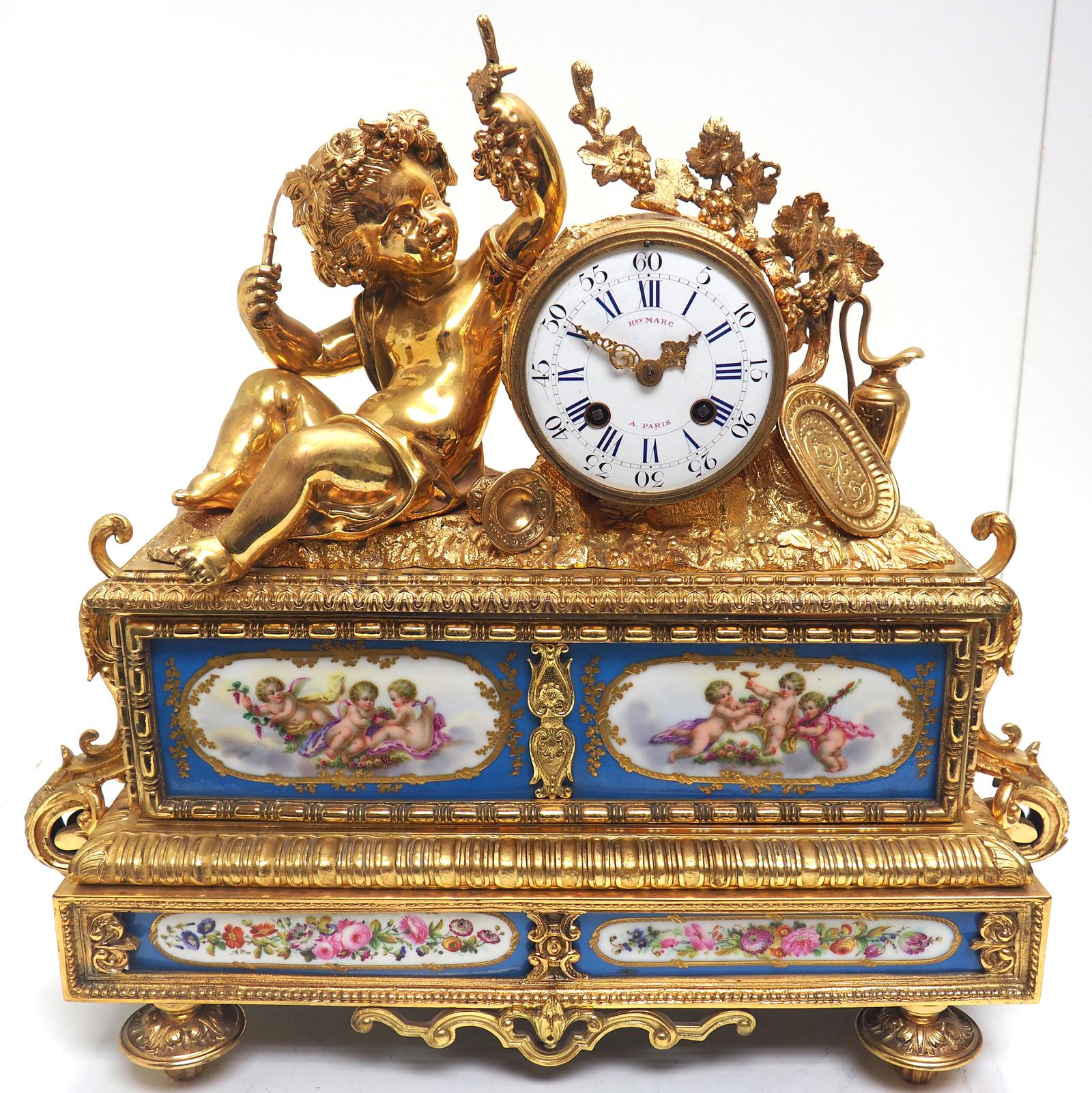 Superb French Ormolu Bronze Sevres Porcelain Mantel Clock Sought Cherub Design Striking 8-day Mantle Clock (1 of 17)