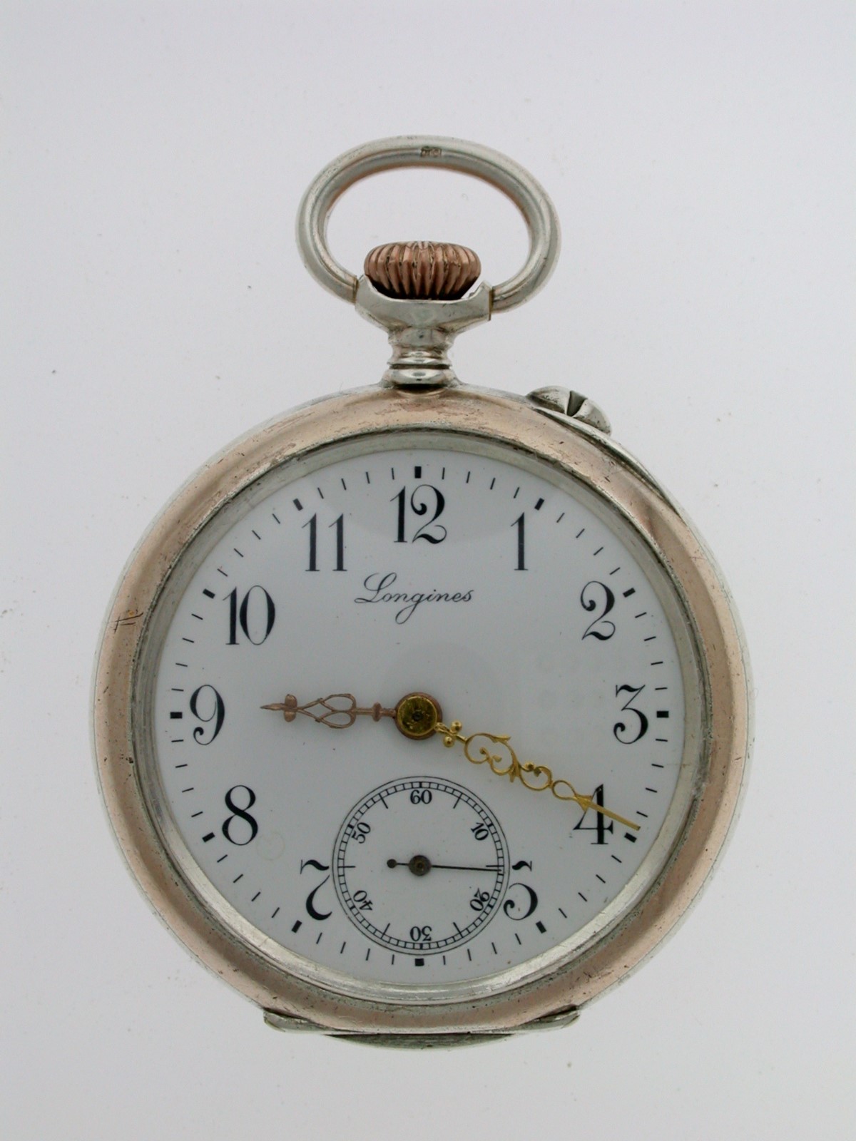 Superb Gents Longines Silver 0.800 Art Nouveau Open Face Swiss FOB Pocket Watch 1904
