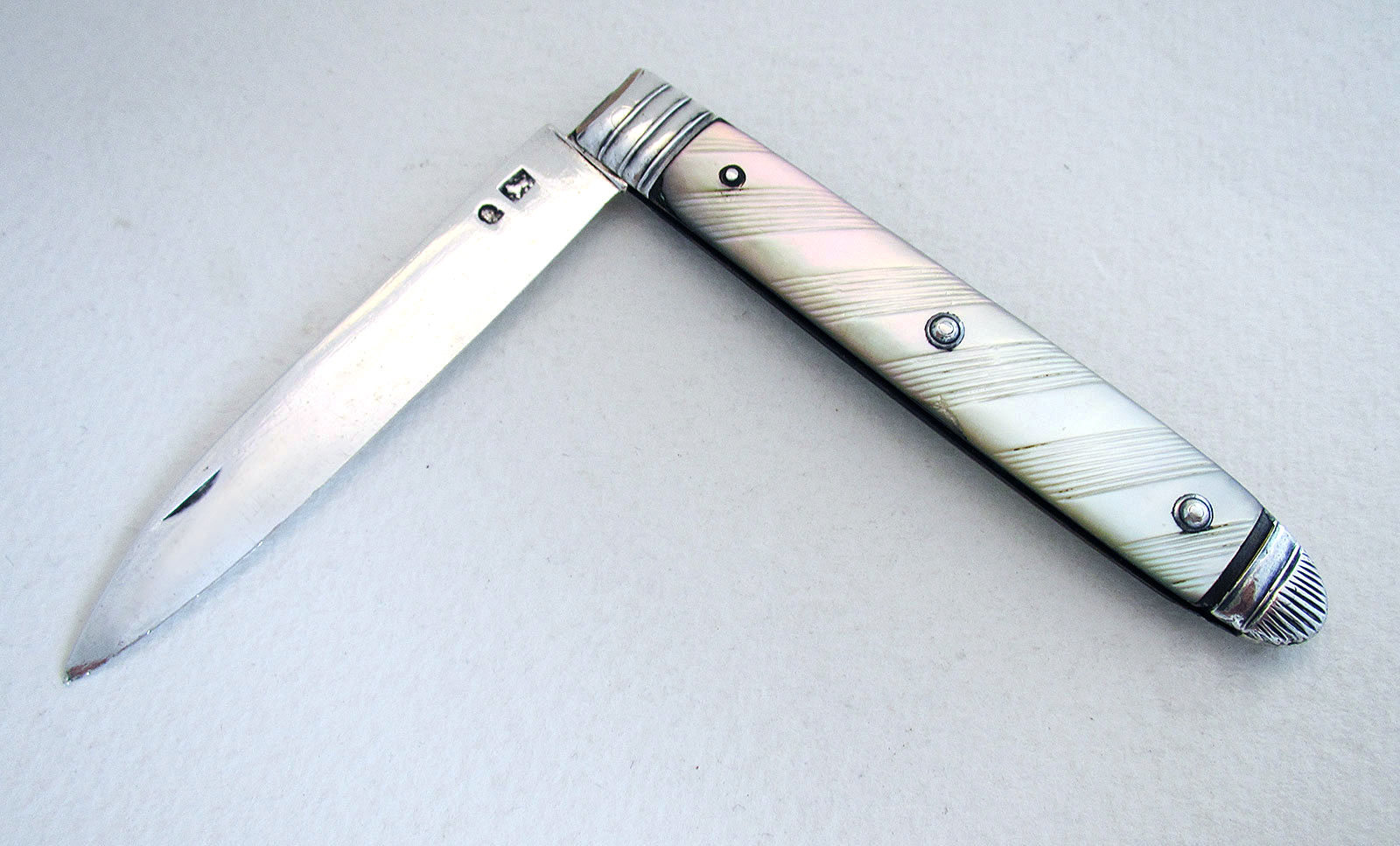 Superb George III Sterling Silver & Mother of Pearl Mop Antique English Sheffield Hallmarked Folding Pocket Fruit Penknife C.1800