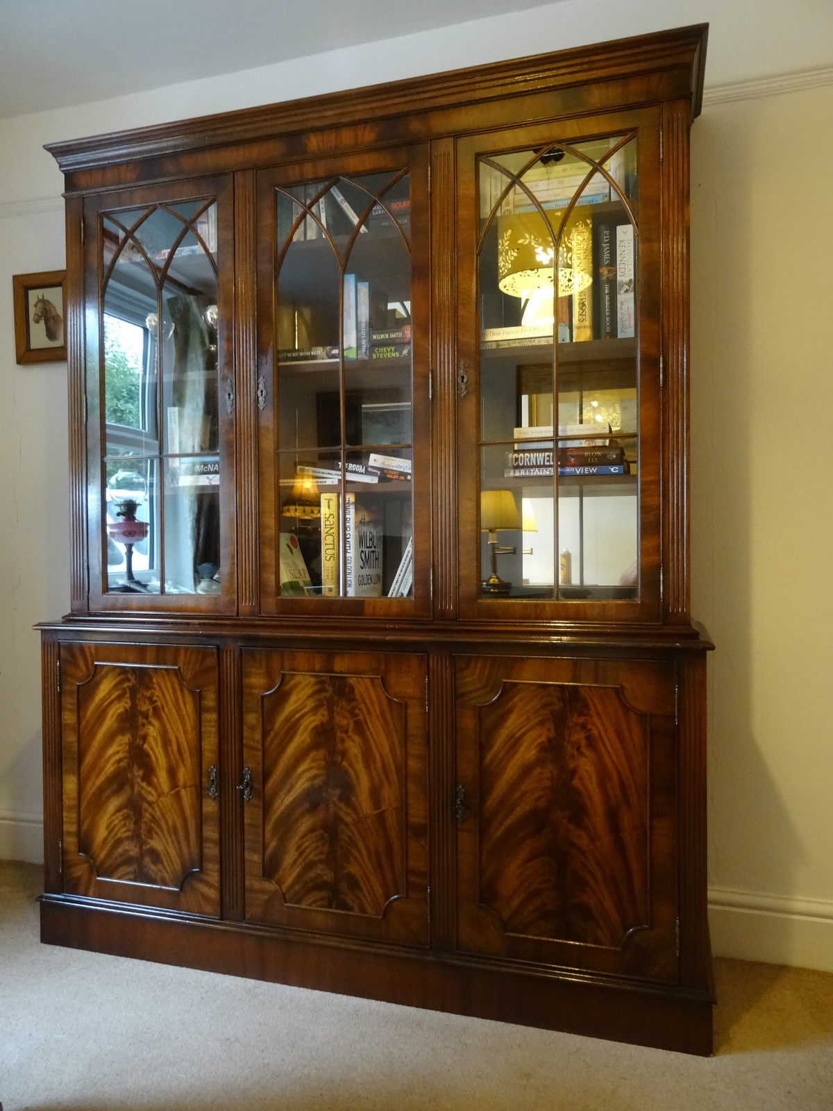 Superb Georgian Revival Astragal Glazed Flame Mahogany Bookcase Display Cabinet