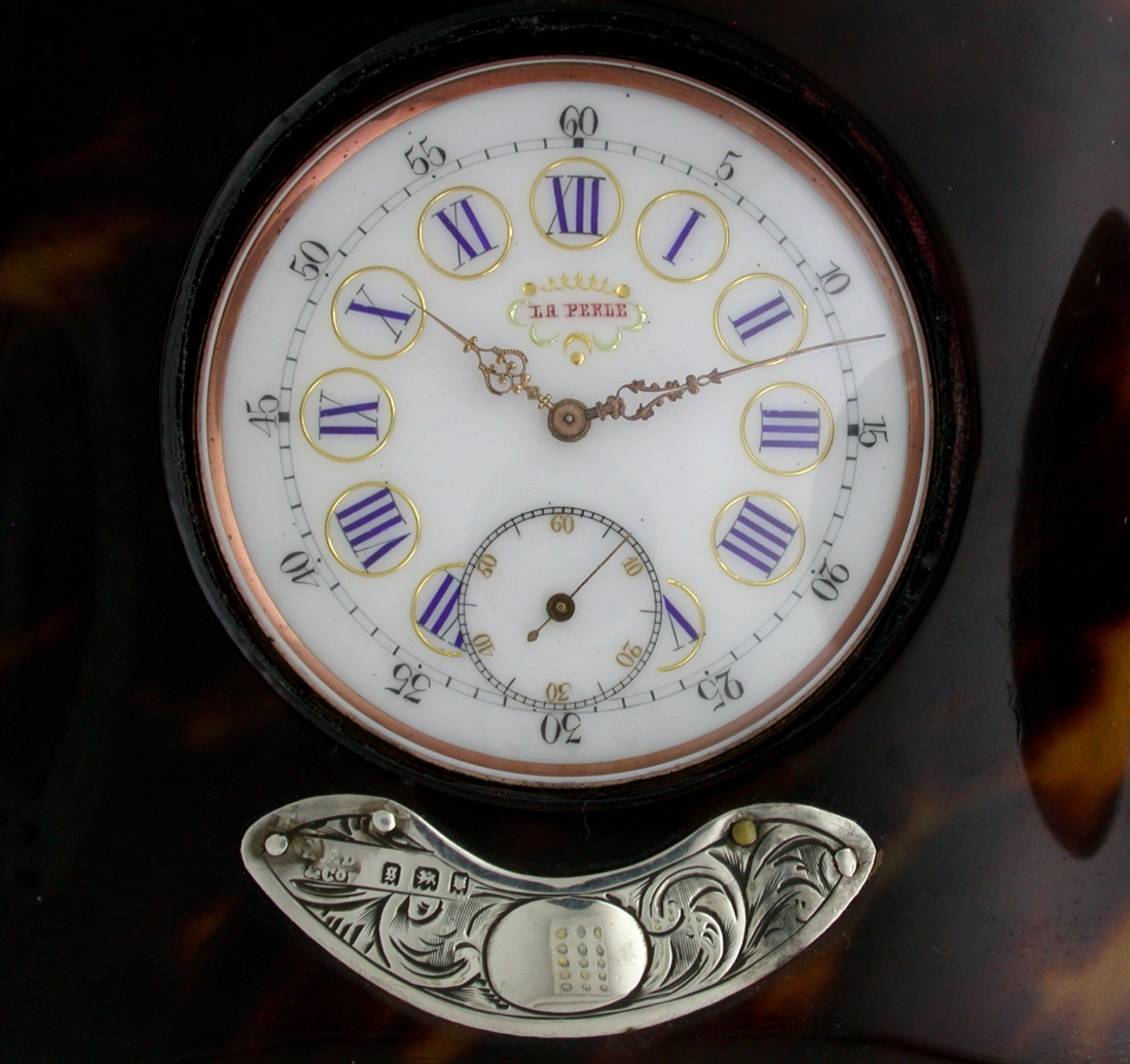 Superb Goliath Gunmetal La Perle Pocket Watch is Tortoiseshell Case, London, England 1922