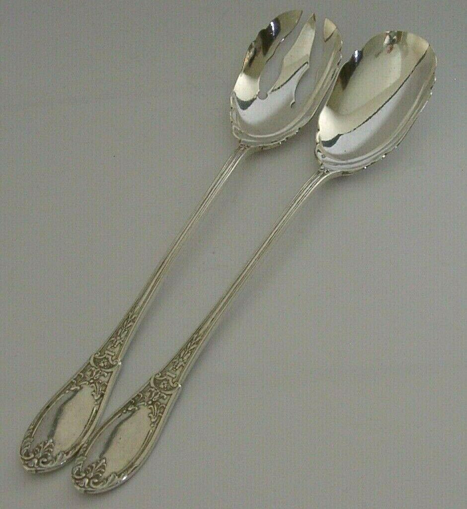 Superb Heavy Pair of Solid Sterling Silver French Salad Servers c.1900