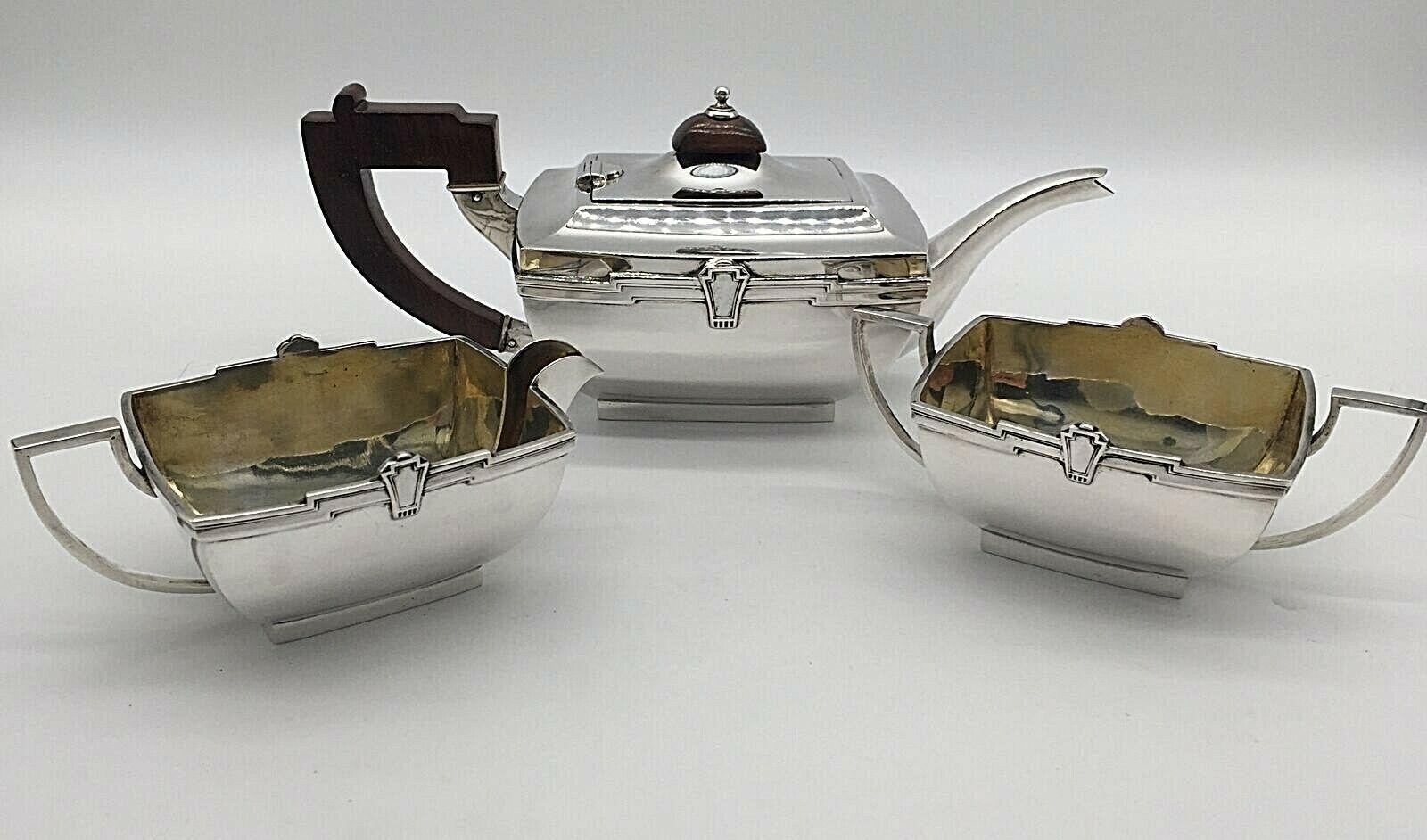 Superb Indian Art Deco Sterling Silver Tea Set Bartons Bangalore Heavy Gauge