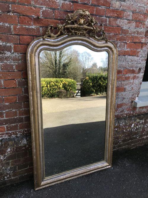 Superb Large Antique 19th Century French Carved Wood & Gesso Original Shaped Top Silvered & Gilt Mirror