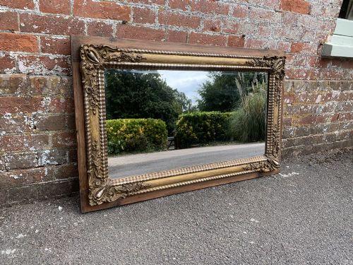Superb Large Antique Distressed French 19th Century Carved Wood & Gesso Original Silver / Gilt Ribbed Framed Mirror