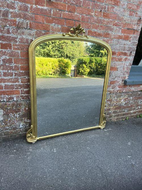 Superb Large Antique English 19th Century Carved Wood & Gesso Arched Top Gilt Overmantle Mirror