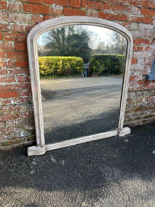 Superb Large Antique English 19th Century Carved Wood & Gesso Arched Top Painted Plain Overmantle Mirror