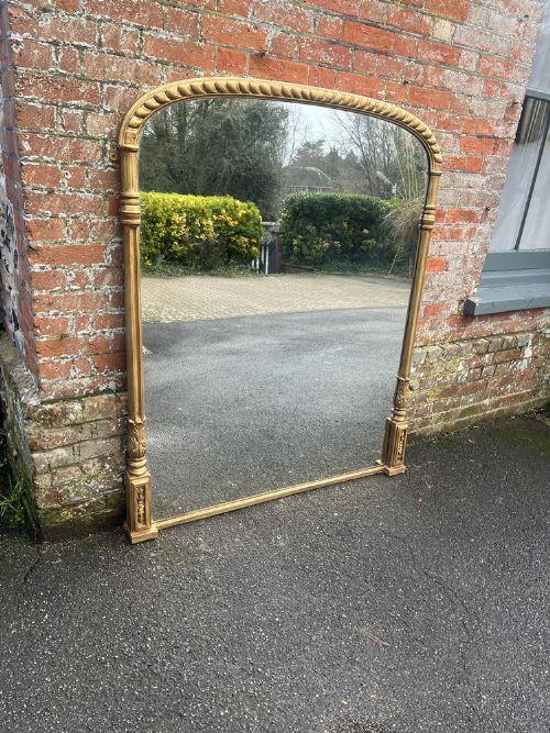 Superb Large Antique English 19th Century Carved Wood & Gesso Gilt Overmantle Mirror
