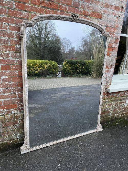 Superb Large Antique English 19th Century Carved Wood & Gesso Painted Ribbed Framed Mirror