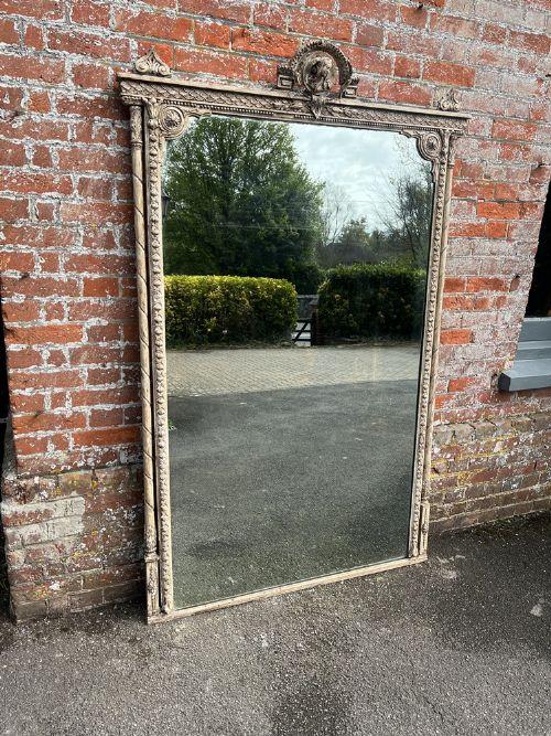 Superb Large Antique French 19th Century Carved Wood & Gesso Painted Column Framed Mirror