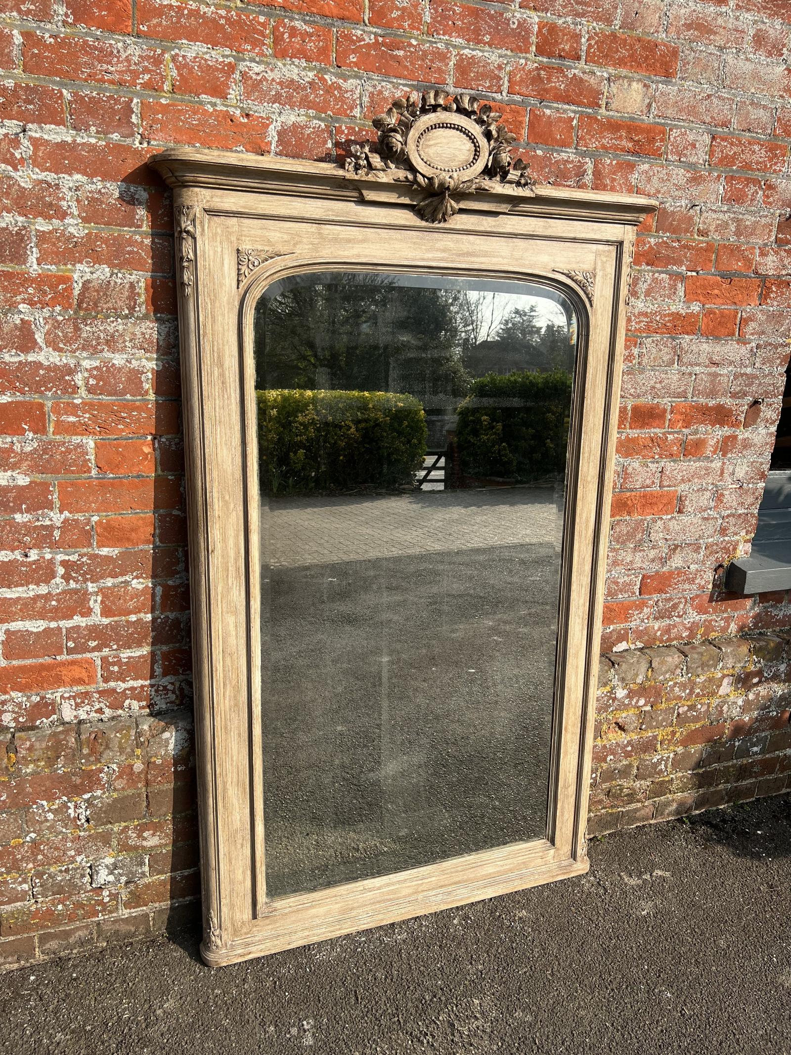 Superb Large Antique French 19th Century Carved Wood Painted Mirror