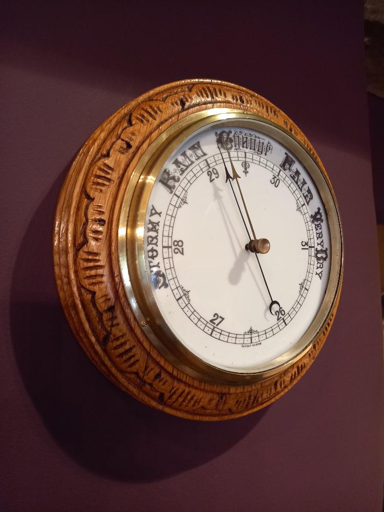 Superb Large Antique Oak & Porcelain Dial Barometer