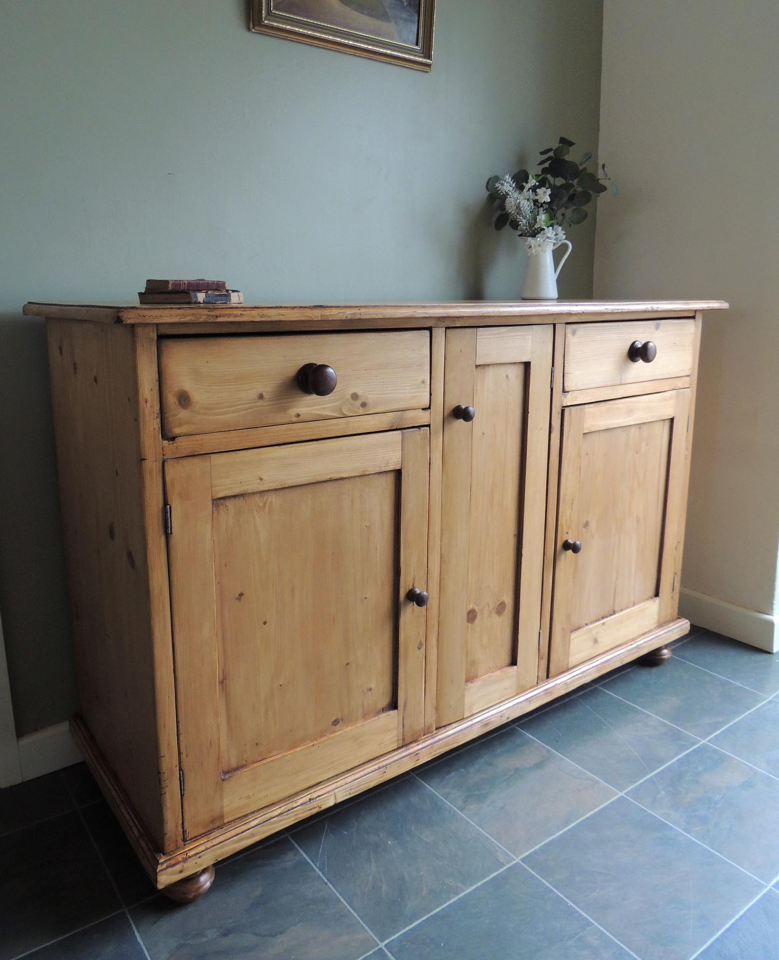Superb Large Antique Victorian Solid Pine Sideboard Drawers Cupboard