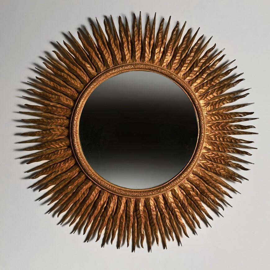 Superb Large Mid 20th Century French Giltwood Sunburst Mirror