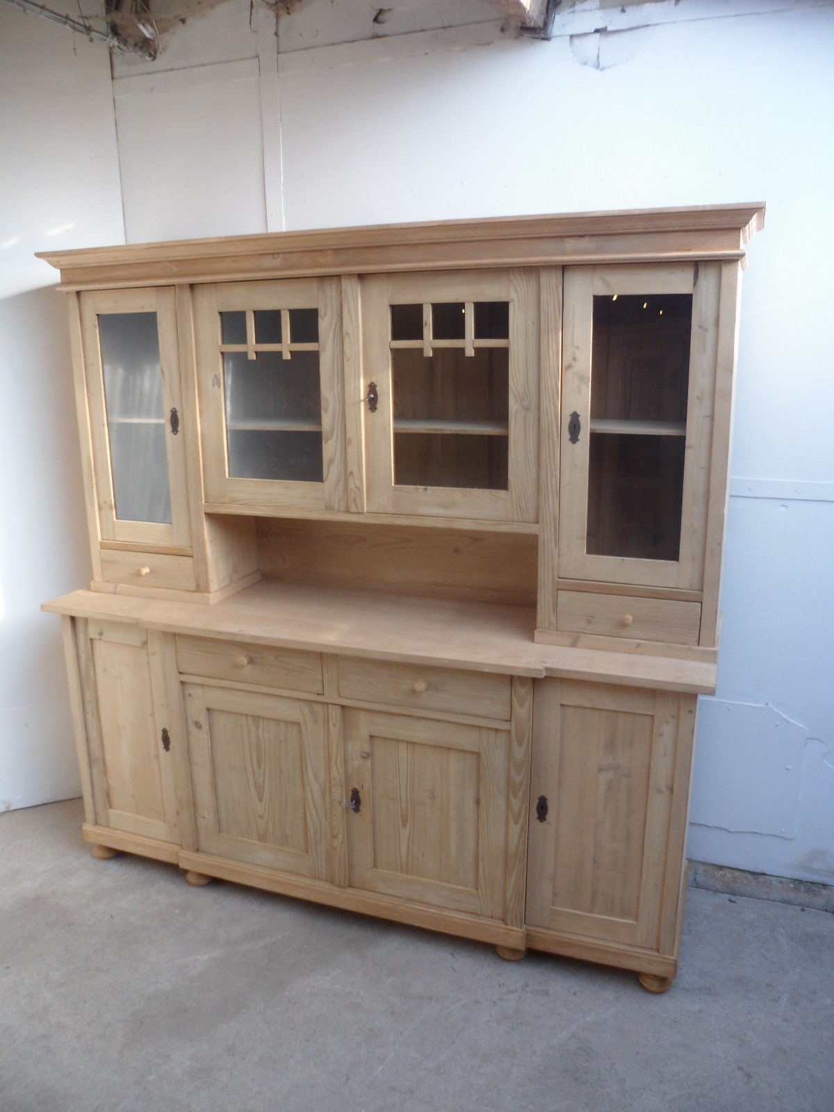 Superb Large Old Pine 4 Door Lattice Kitchen Dresser to wax / paint