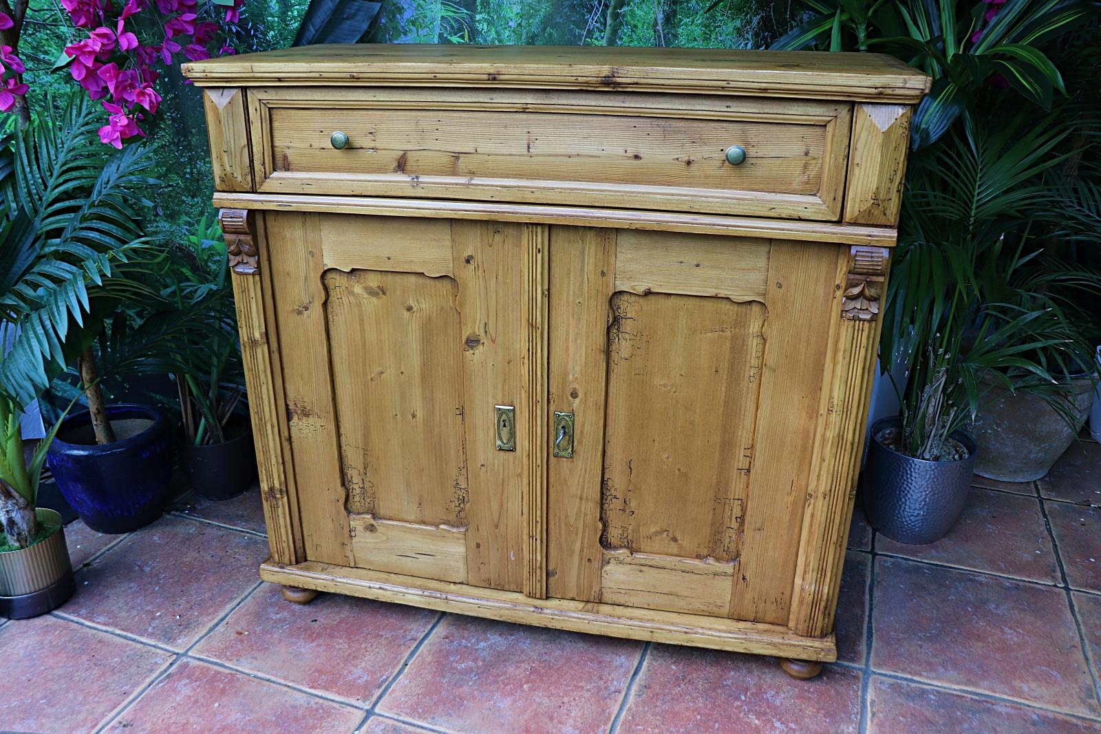 On the rustic side with great character. New lock and key, original latches for left door. Ready for immediate use with a good running drawer and smoothly closing doors, combined with an all round sturdy feel. Fabulous!