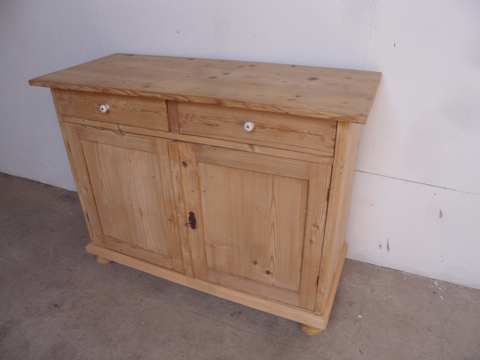 Superb Large Pine Ceramic Handle 2 Drawer 2 Door Kitchen Dresser Base c.1920
