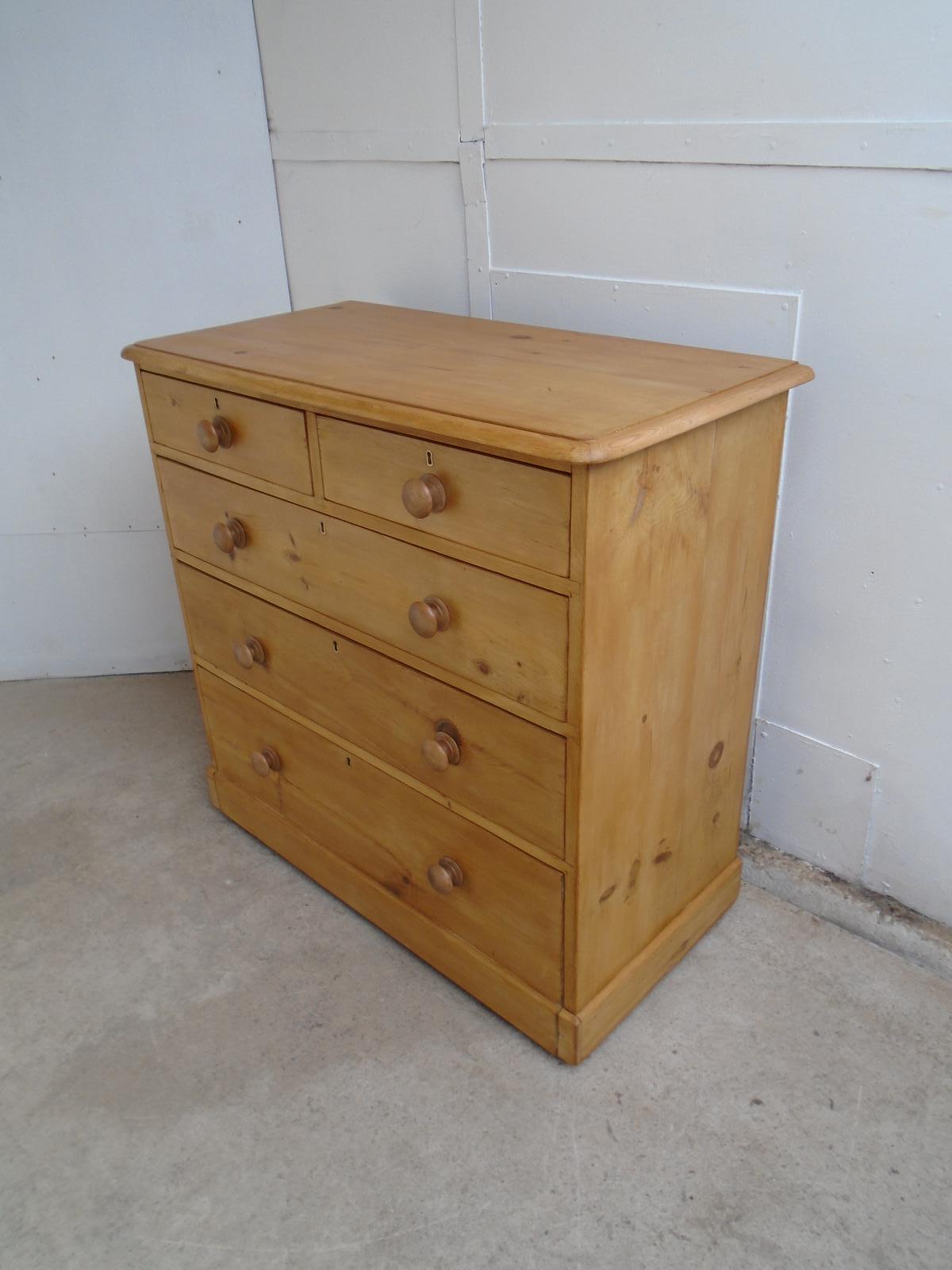 Superb Large Victorian Waxed Antique Pine 5 Drawer Chest of Drawers