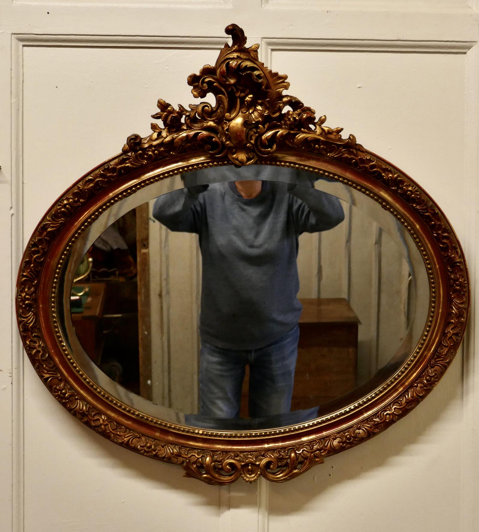 Superb Late 19th Century Regency Style Oval Gilt Mirror