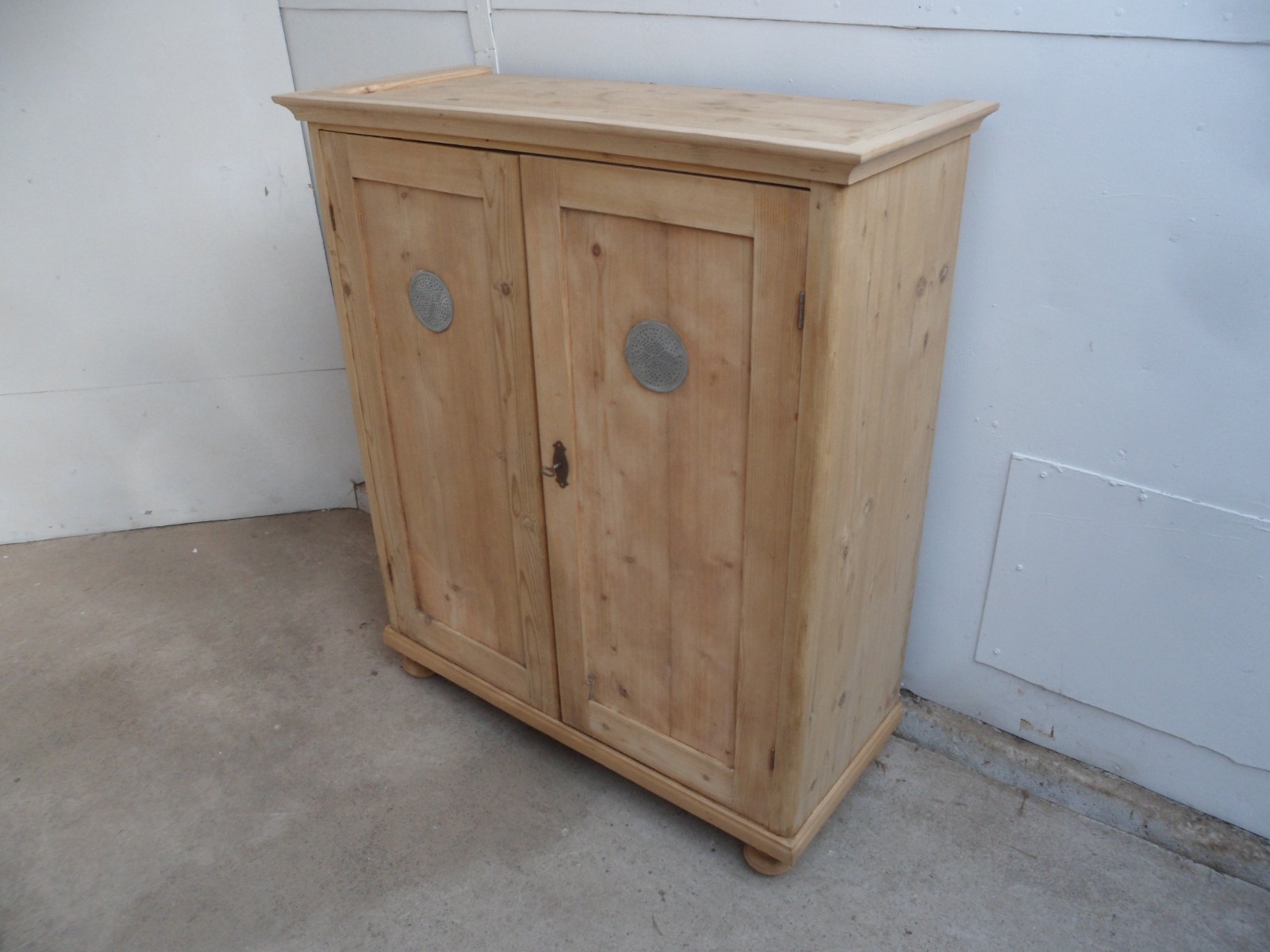 Superb Late Victorian Antique Pine 2 Door Metal Vent Cupboard to wax / paint
