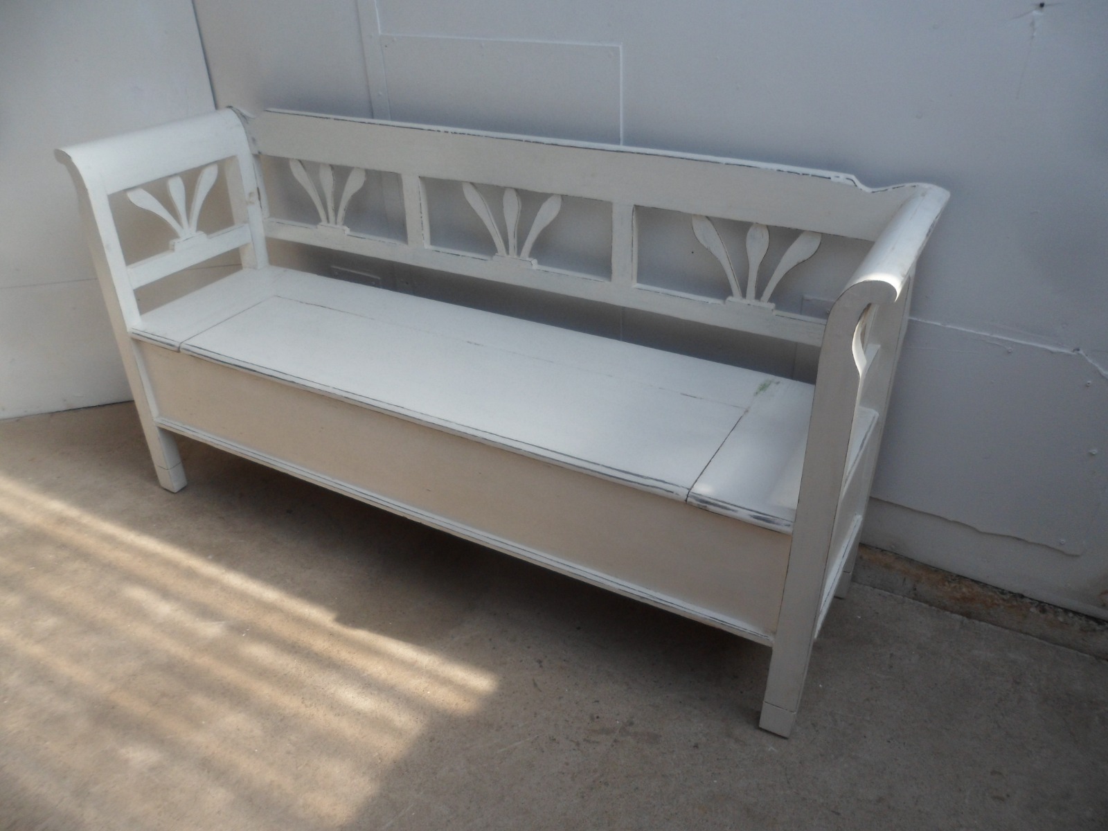 Superb Late Victorian Antique Pine Painted White 3 Seater Shabby Chic Bench c.1880