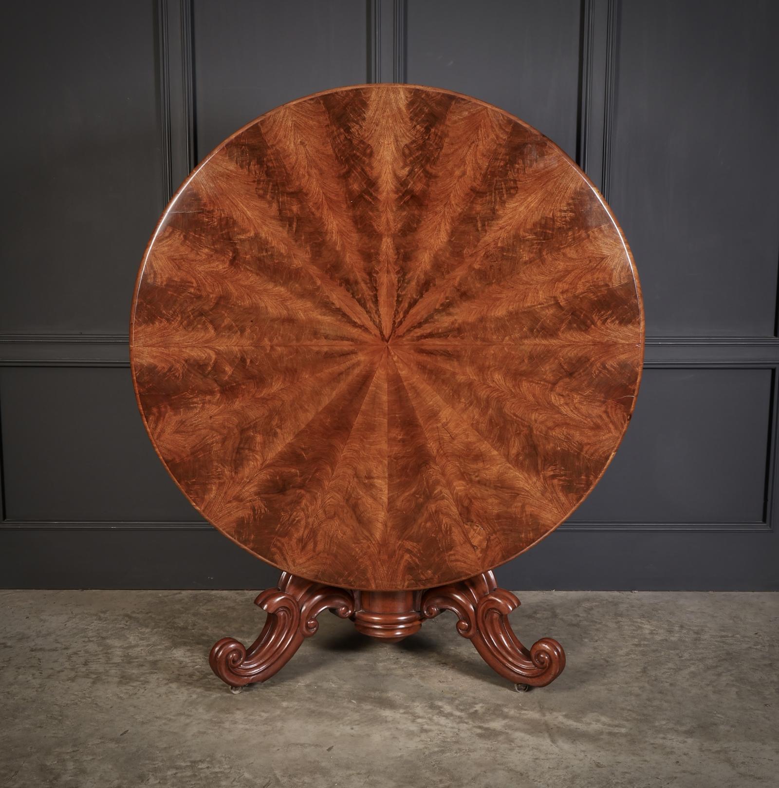 An exceptional Early Victorian tilt-top centre table dating to circa 1840, crafted from beautifully figured mahogany.