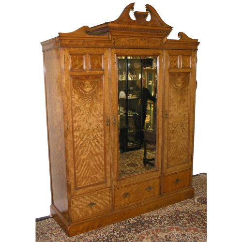 Superb Maple & Co, London Satinwood & Marquetry Wardrobe