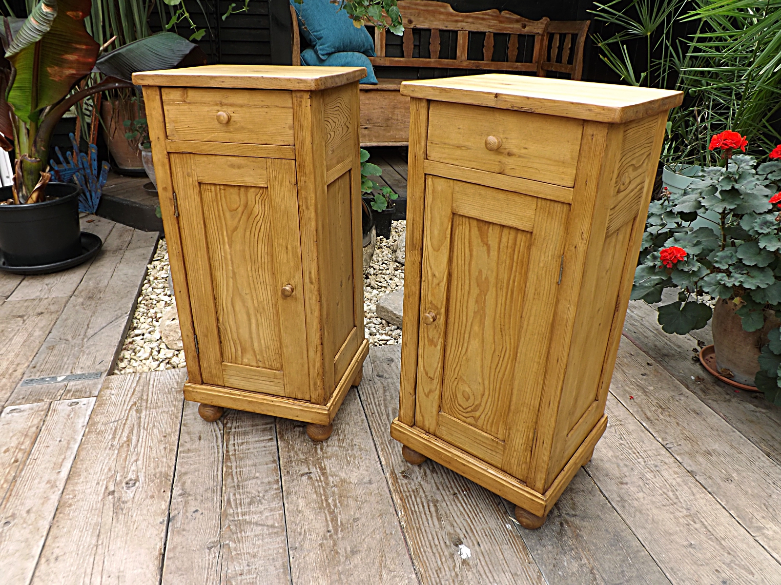 Superb Matching Pair of Old Antique Pine Bedside Cabinets / Cupboards. We Deliver!