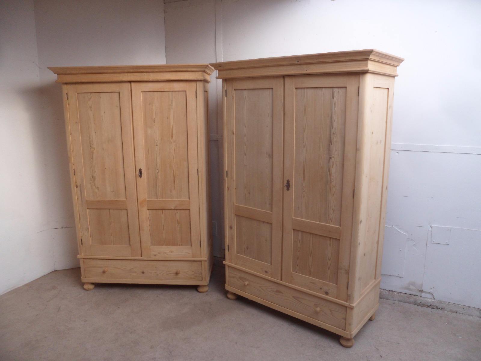 Superb Matching Pair of Old Pine Knockdown Wardrobes to wax / paint