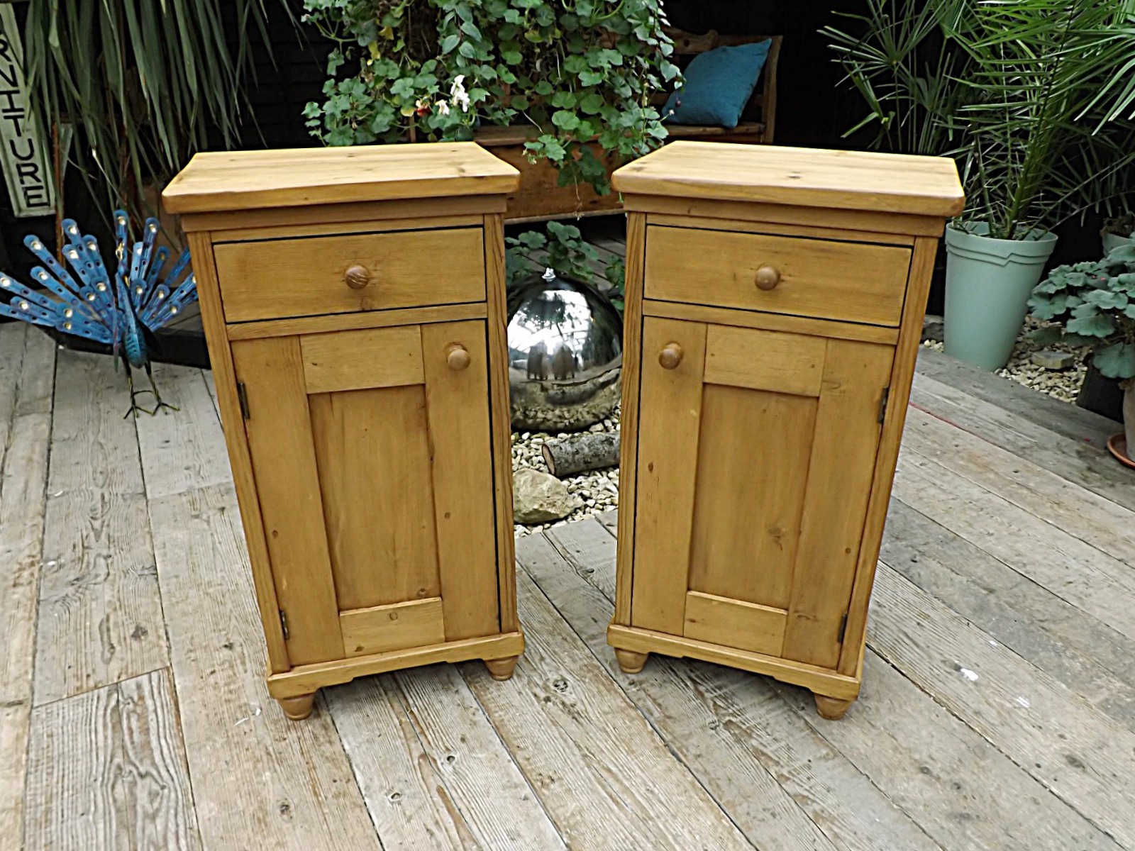 Superb Matching Pair Old Antique Pine Bedside Cabinets / Cupboards. We Deliver!