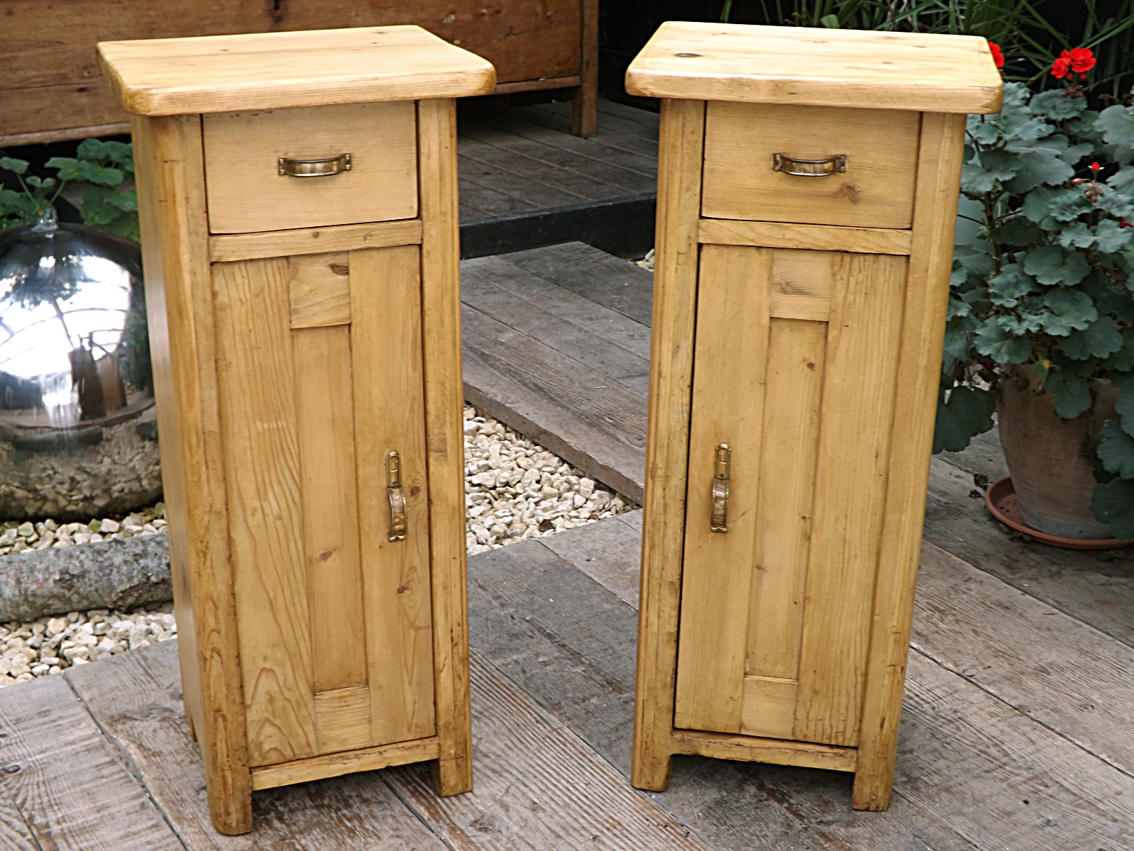 Superb Matching Pair Old Antique Pine Bedside Cabinets / Cupboards. We Deliver!