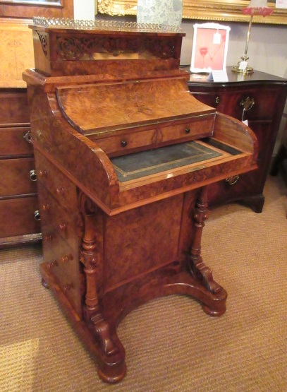 Superb Mid Victorian Burr Walnut Piano Front Davenport Desk