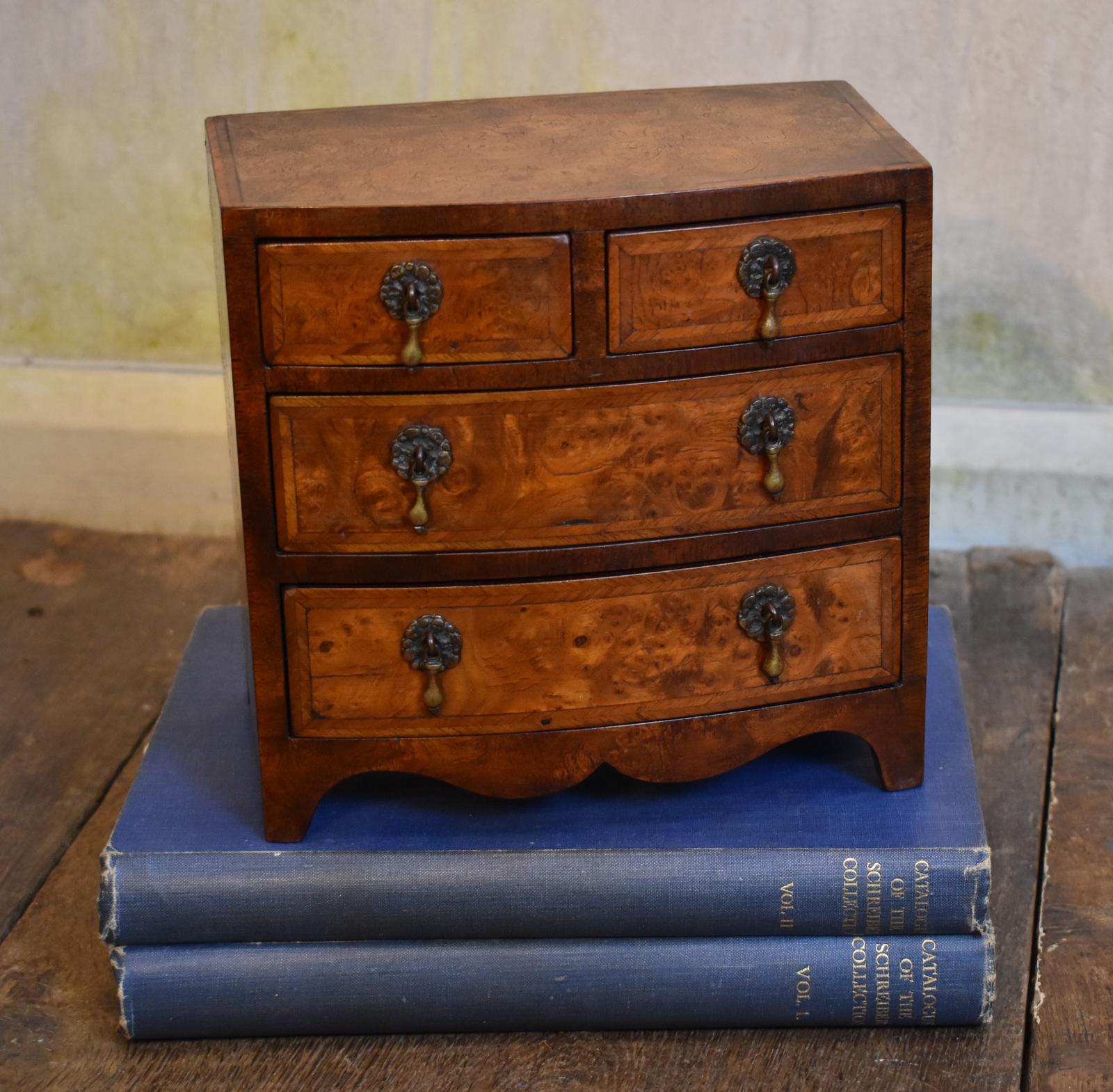 Superb Miniature Burr Elm Bowfront Chest of Drawers (1 of 7)