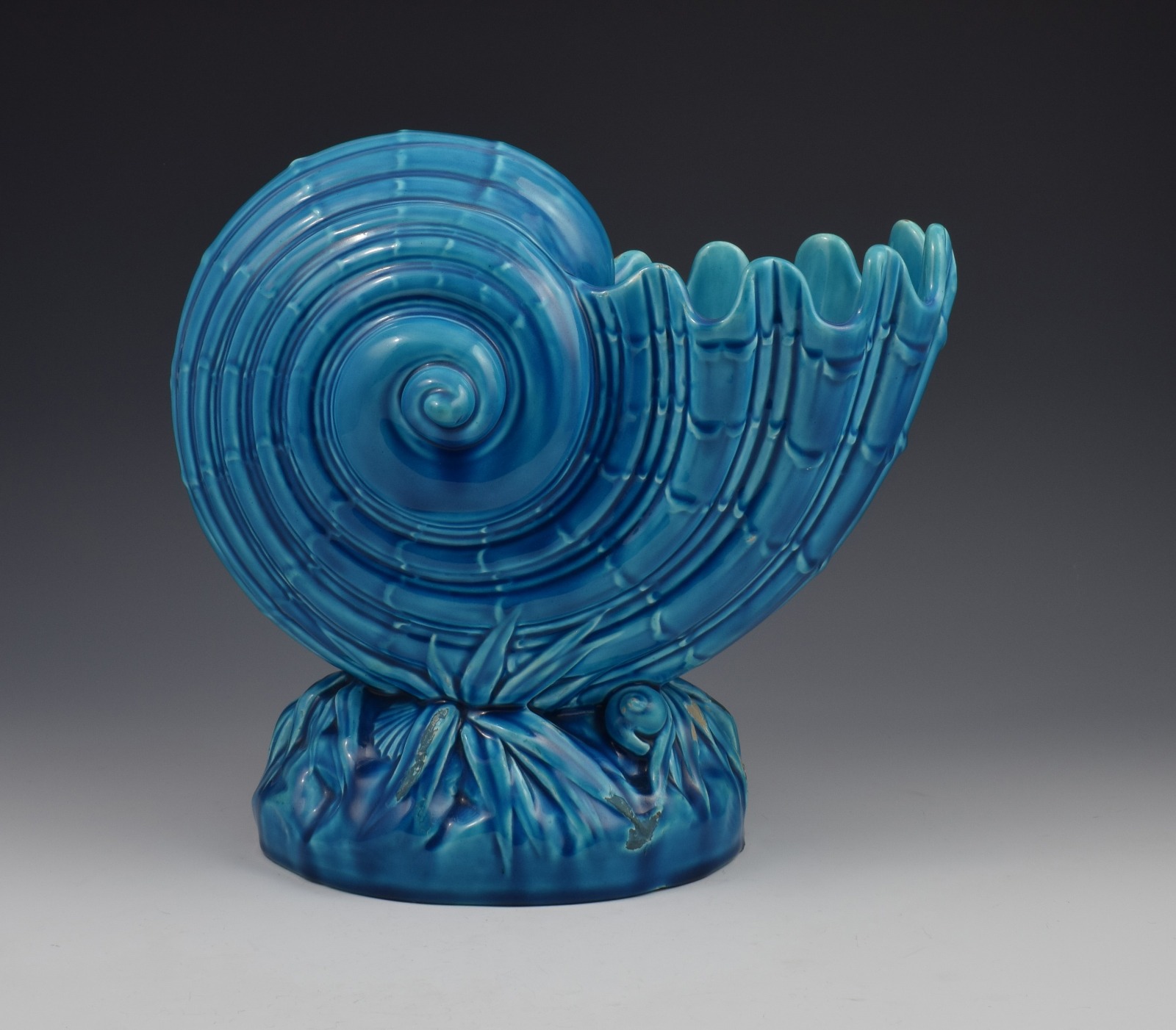 Superb Minton Majolica Turquoise Nautilus Shell Centrepiece Vase (1 of 1)