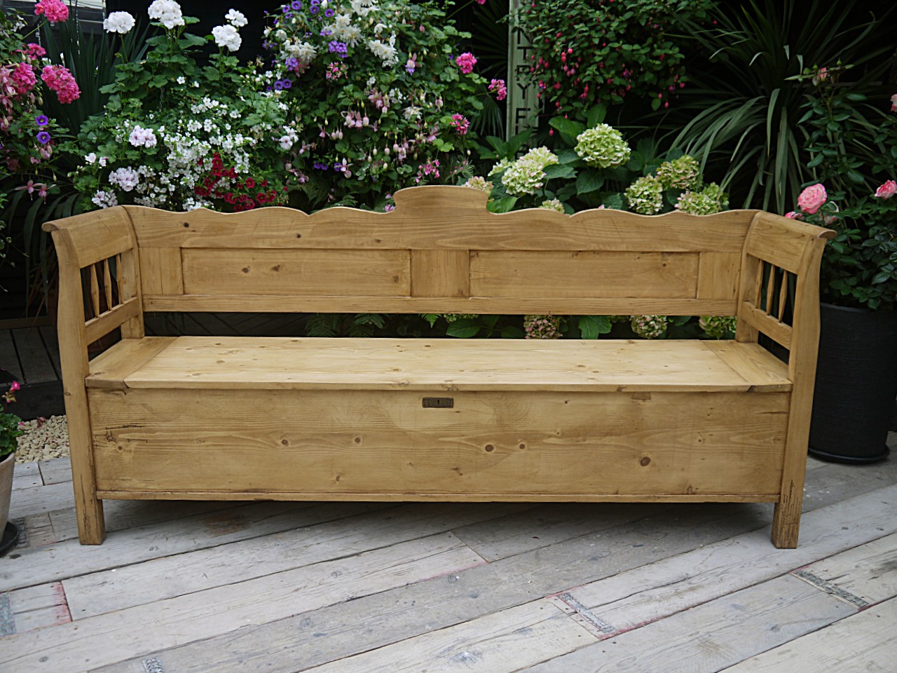 Superb! Old Antique Pine Hungarian Monks Box Bench / Settle / Pew / Storage