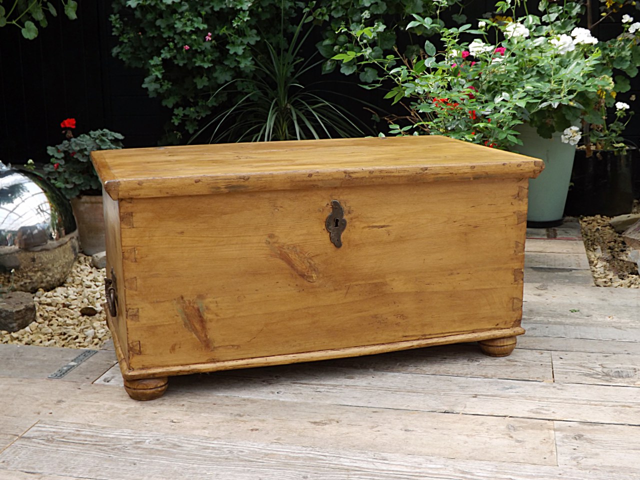 Superb Old Antique Victorian Pine Blanket Box / Chest / Trunk / Table / Storage