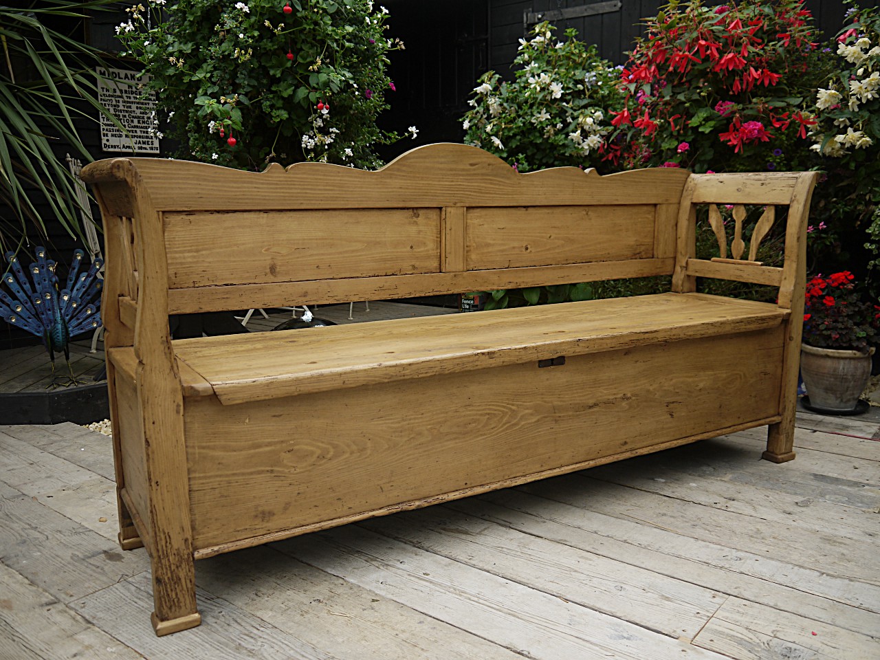 Superb! Old Antique Victorian Pine Hungarian Monks Box Bench / Settle / Pew / Storage