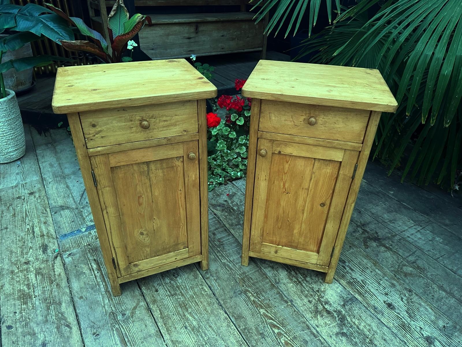 Superb Old Stripped Pine Bedside Cabinets / Cupboards