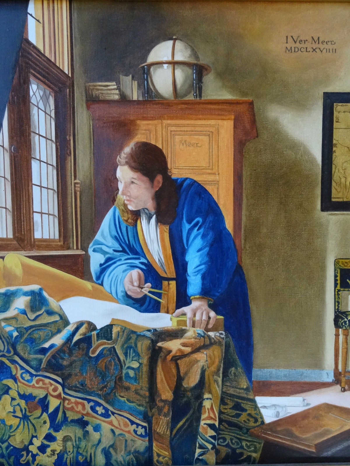 Superb Original Oil Painting after: 'Johannes Vermeer 1632-1675 - De Geograaf