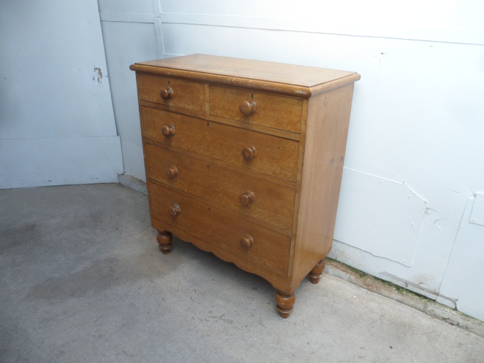 Superb Originally Painted Victorian 5 Drawer Antique Pine Chest of Drawers